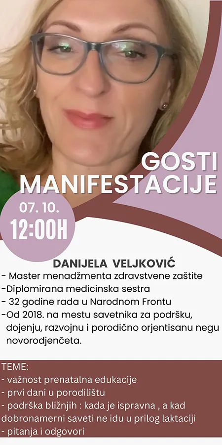 U okviru škole roditeljstva „Bata i Seka“, Danijela Veljković pomaže roditeljima da steknu znanje, samopouzdanje i mir – osnažujući ih da sa ljubavlju, sigurnošću i razumevanjem neguju svoje dete od prvog dana života.