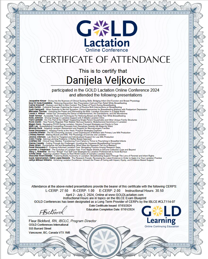 Učešće na GOLD Lactation konferencijama sa fokusom na najnovija istraživanja u oblasti dojenja