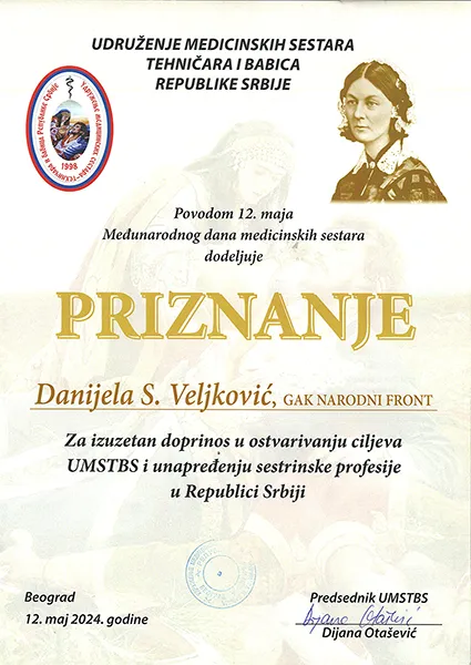 🏆 Dobitnica prestižne nagrade „Najbolja sestra Srbije“ za inovacije i izuzetnu posvećenost struci